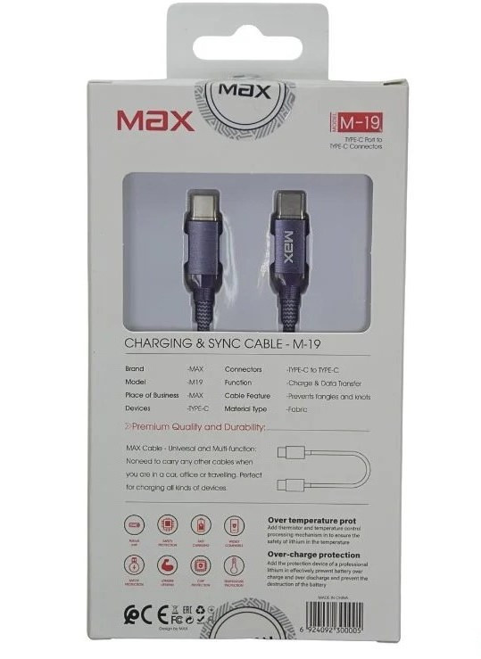 اگر به دنبال یک کابل تایپ C با کیفیت بالا و عملکرد پایدار هستید، کابل شارژ Max مدل M19 میتواند انتخابی مطمئن برای شما باشد. این کابل با طراحی مقاوم و متریال باکیفیت، برای استفاده روزمره ساخته شده و در برابر خمشدن و کشیدگی دوام خوبی دارد.